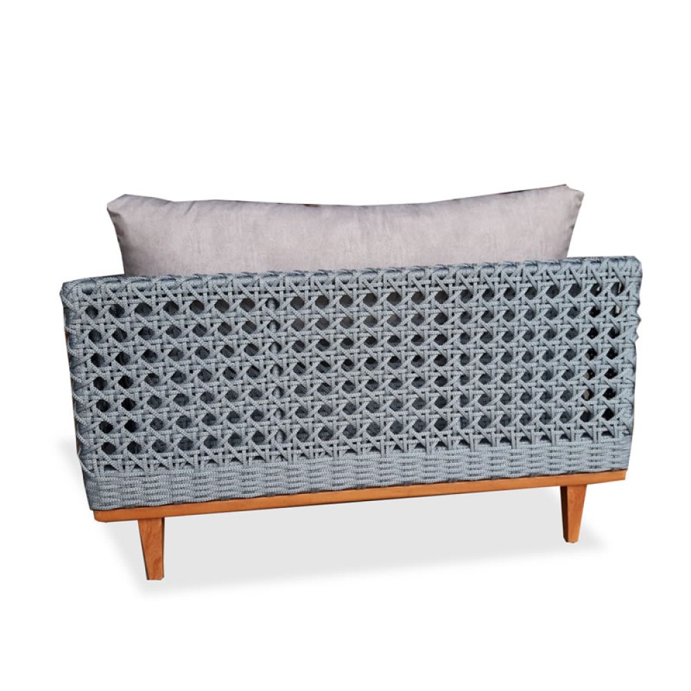 Sofá para ambiente externo, estrutura em alumínio recoberto por pintura eletrostática, trama em corda náutica e almofadas removíveis em tecido impermeável oferecendo grande conforto ao sentar. Ideal para ser utilizada em sua varanda, piscina, jardim ou até mesmo sua área interna.