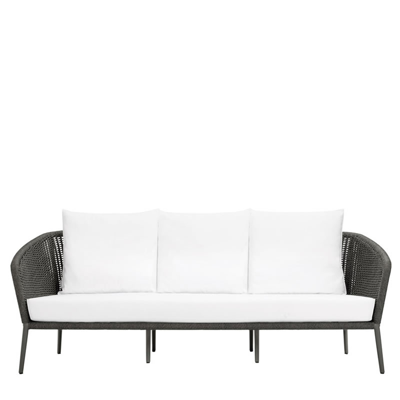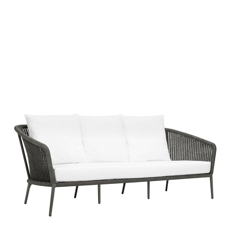 Sofá para ambiente externo, estrutura em alumínio recoberto por pintura eletrostática, trama em corda náutica e almofadas removíveis em tecido impermeável oferecendo grande conforto ao sentar. Ideal para ser utilizada em sua varanda, piscina, jardim ou até mesmo sua área interna.