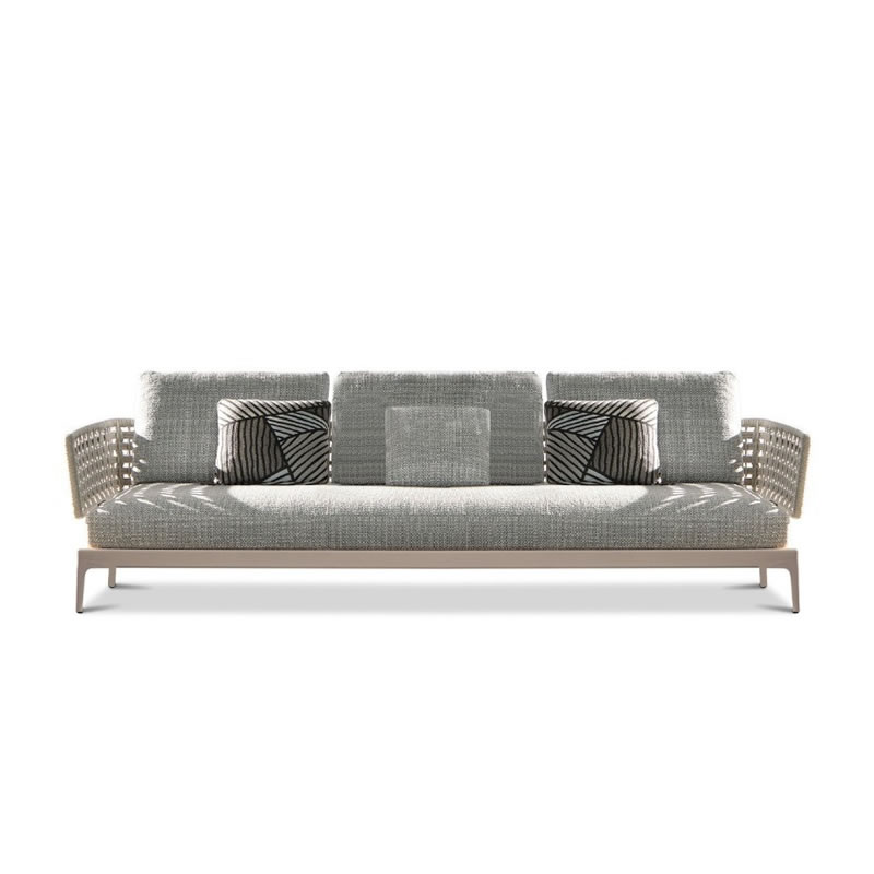 Sofá para ambiente externo, estrutura em alumínio recoberto por pintura eletrostática, trama em corda náutica e almofadas removíveis em tecido impermeável oferecendo grande conforto ao sentar. Ideal para ser utilizada em sua varanda, piscina, jardim ou até mesmo sua área interna.