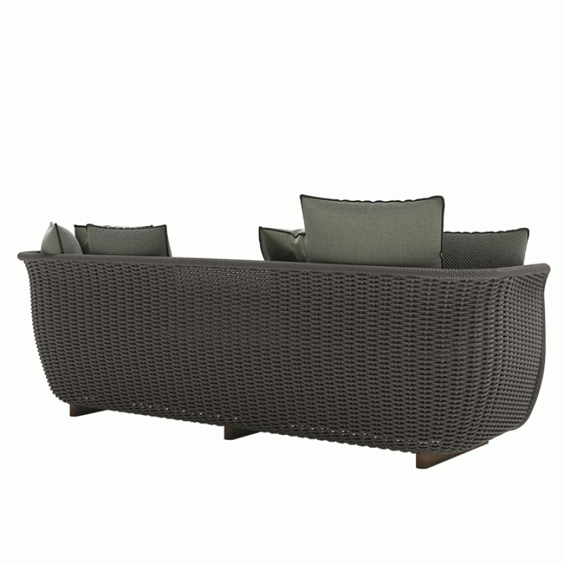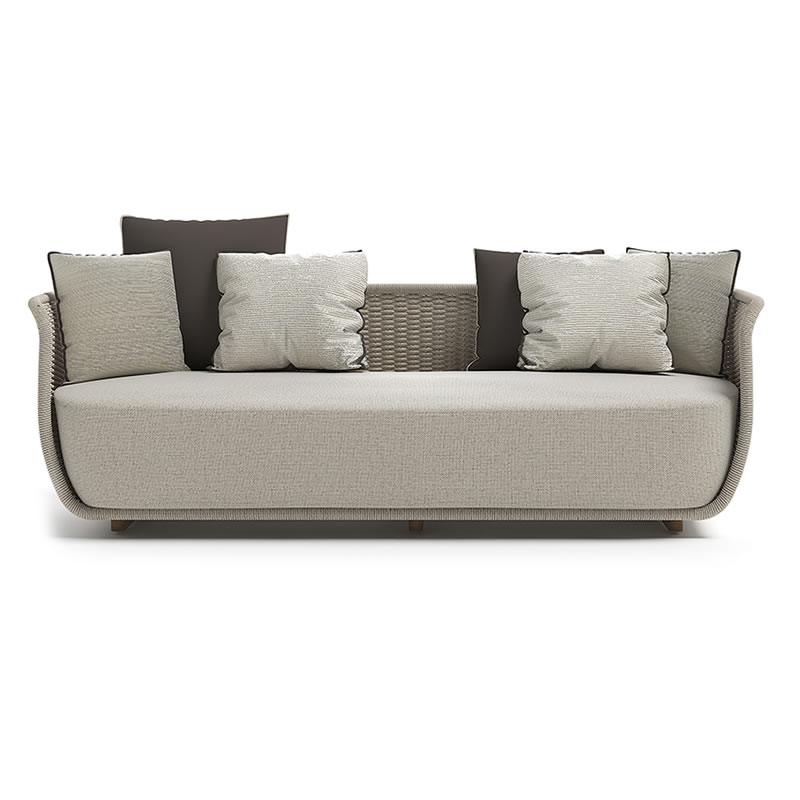 Sofá para ambiente externo, estrutura em alumínio recoberto por pintura eletrostática, trama em corda náutica e almofadas removíveis em tecido impermeável oferecendo grande conforto ao sentar. Ideal para ser utilizada em sua varanda, piscina, jardim ou até mesmo sua área interna.