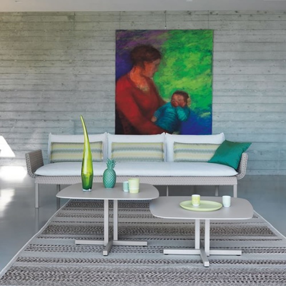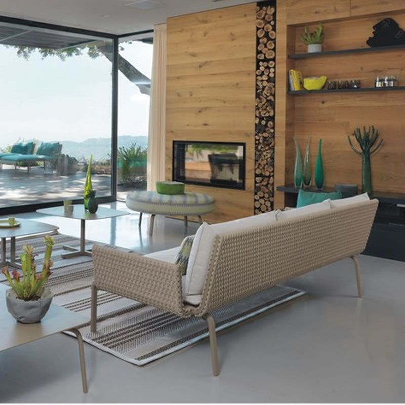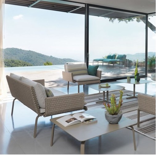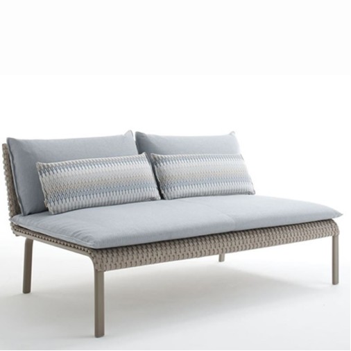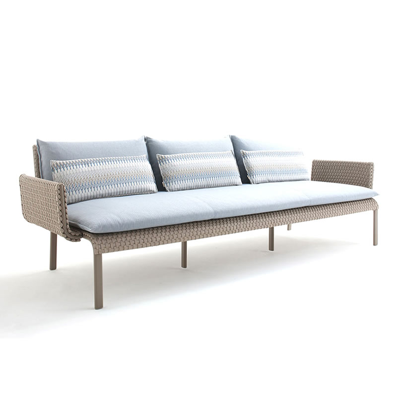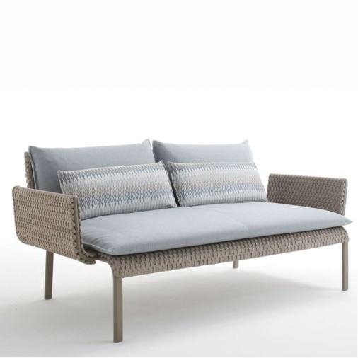 Sofá para ambiente externo, estrutura em alumínio recoberto por pintura eletrostática, trama em corda náutica e almofadas removíveis em tecido impermeável oferecendo grande conforto ao sentar. Ideal para ser utilizada em sua varanda, piscina, jardim ou até mesmo sua área interna.