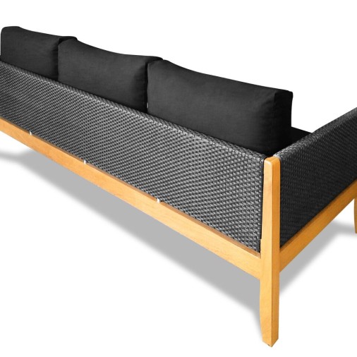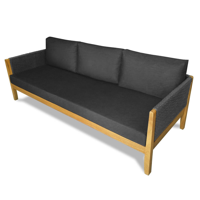 Sofá com design sofisticado e elegante para seu ambiente externo. Estrutura em madeira maciça Cumarú que permite sua exposição a intempéries, revestida em fibra sintética com matéria prima de alta qualidade. Almofadas são removíveis, em tecido impermeável, com proteção UV oferecendo grande conforto ao sentar. Sua durabilidade e elegância é seu diferencial para ser utilizada em sua varanda, piscina, jardim ou até mesmo sua área interna.